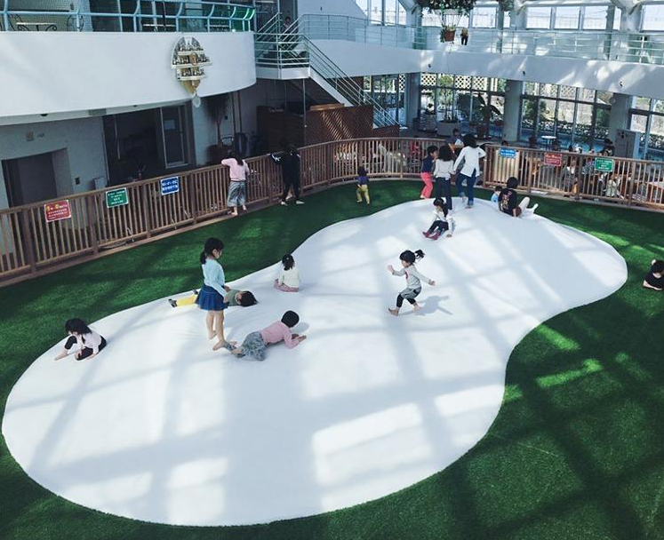 游樂場設備蹦蹦云形狀像白色云朵,似行云流水,尺度根據場地環境設計而成,外觀形狀不重復。可跳、可坐、可滑、可躺、合適親子家庭休閑游樂,沒有年紀約束。可根據整體場景定制,自由組合各種形式,簡約而不簡單;