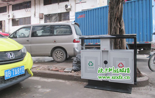 廣州市新塘鎮(zhèn)街道辦采購F49戶外分類環(huán)保垃圾桶,按照15天交貨日期,如期完工,送貨上門。此款F49戶外分類環(huán)保垃圾桶規(guī)格為:1000*350*1000.鋼制垃圾桶屋檐桶頭設計,防止雨水傾入內(nèi)桶。鋼制垃圾桶中間圓形煙頭投口,有害物投口,充分利用空間。桶兩邊都絲印有,標志,字體,不可回收字樣,采用紅顏色。 標志,字體,可回收字樣,采用綠顏色。巧妙的設計,結(jié)合城市人性化,更好服務城市居民。