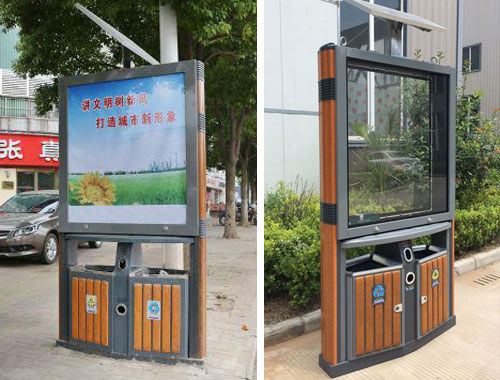 這批垃圾桶分為“可回收垃圾”和“不可回收垃圾”兩個內膽,打開后蓋即可將垃圾倒出。在箱頂上還有一塊太陽能光板,用于吸收光能轉化為讓垃圾桶“發聲”的電能。箱體中間安裝了太陽能系統,供夜間照明用,在夜晚也能幽幽發亮,在校園內形成了一道“亮麗的風景線”。