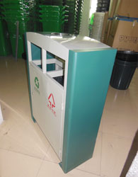 欣方圳個性化定制鋼制垃圾桶十分適用于大酒店,首選F25環保垃圾桶的規格為310*310*810mm。欣方圳鋼板沖孔環保垃圾桶采用優質冷軋鋼材料經剪鈑下料、折彎、沖壓、焊接、打磨、等工藝:表面經過除油、噴砂防銹處理后,再進行酸洗磷化處理;表面清理干燥后整體進行靜電噴涂或烤漆處理,靜電噴涂是經過流水線高溫固化爐固化后再出爐冷卻,加工后的塑粉附著力強,不易剝落;F25環保鋼制垃圾桶堅固耐用,色澤多樣化,不易破損,更適合學校,銀行,房地產,別墅等擺放。