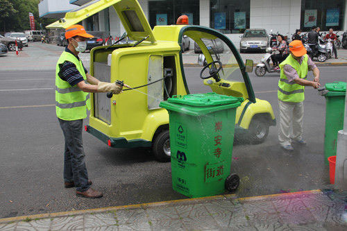 “ 過去垃圾桶清洗依賴人工作業,環衛工人勞動強度大、效率低,垃圾桶清洗車的使用實現了質量、效率的雙飛躍。”區環衛處工作人員說,環衛工作正經歷著從人工化到機械化,從機械化到精細化、全覆蓋模式的轉變。過去人工清洗垃圾桶,完成全區垃圾桶清洗任務需要4天時間。今年采用區塊負責制,以昆崳路為界,劃分成東西兩個責任區,由4名環衛工人分成2組,輪流駕駛垃圾桶清洗車,一天便可綜合清洗一次。現在,人工清洗僅限于偏僻路段,今后將逐步取消。
