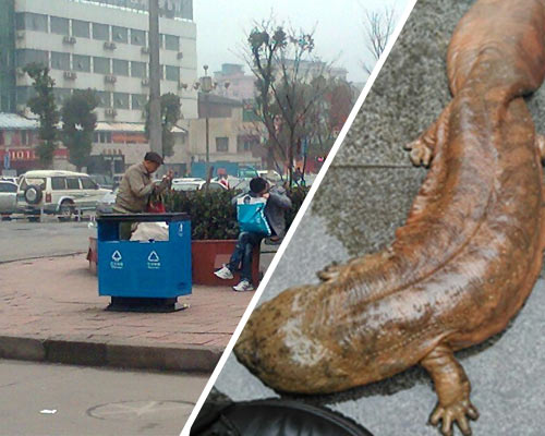成都火車(chē)東站廣場(chǎng)外圍滿(mǎn)了人,大家都好奇地看著在地上爬來(lái)爬去的4個(gè)小家伙,它們可不是普通動(dòng)物,而是國(guó)家二級(jí)保護(hù)動(dòng)物——娃娃魚(yú)。它們的來(lái)歷撲朔迷離,據(jù)說(shuō)是環(huán)衛(wèi)工在打掃垃圾桶時(shí),從一個(gè)塑料袋里翻出來(lái)的,究竟是何人所丟不得而知。現(xiàn)在4條娃娃魚(yú)被送往成都動(dòng)物園,暫未有發(fā)現(xiàn)不適現(xiàn)象。