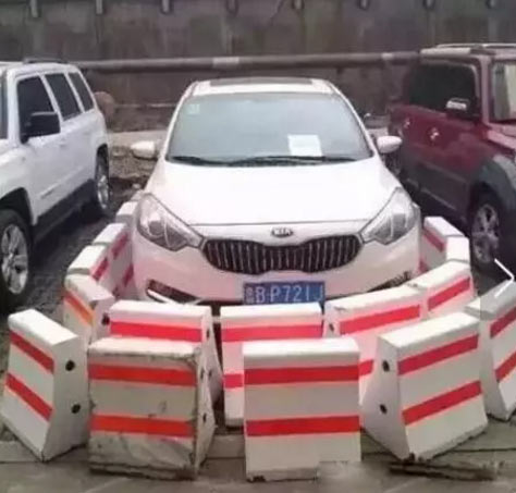 2016年6月,武漢一輛紅色雪弗蘭轎車的前后方被幾個(gè)大石墩圍住,該車主的停車位置靠近地下車庫(kù)出口,是消防通道,不能停車。此前物業(yè)曾多次勸阻和警告其不能在此停車,他卻并不聽(tīng)勸,只能出此“下策”。