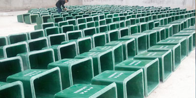 玻璃鋼垃圾桶桶身和內膽部分,采用高級玻璃鋼材質一次成型,經過打磨、除塵 、噴漆等一系列后期工藝然后出成品。