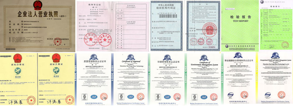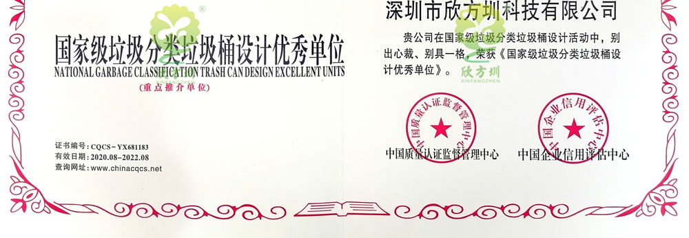 欣方圳營業(yè)執(zhí)照、稅務(wù)登記證、組織機(jī)構(gòu)代碼證,垃圾桶檢驗(yàn)報(bào)告資質(zhì),“欣方圳”注冊(cè)商標(biāo),信息安全管理、知識(shí)產(chǎn)權(quán)管理、ISO9001:2015、ISO14001:2015、OHSAS18001認(rèn)證企業(yè)