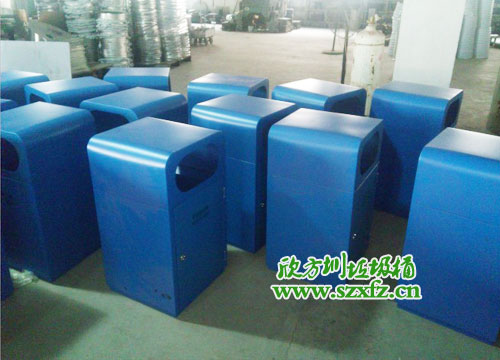 這批不銹鋼垃圾桶的規格是400*400*730mm,按照客戶的要求制作成三種顏色,并絲印不同的垃圾回收標識:45個藍色的印可回收垃圾的中英文字樣,47個灰色的印其他垃圾的中英文字樣,34個紅色的則印有害垃圾的中英文字樣。成品的造型十分精致漂亮,亮眼的顏色也是一道美麗的風景線。