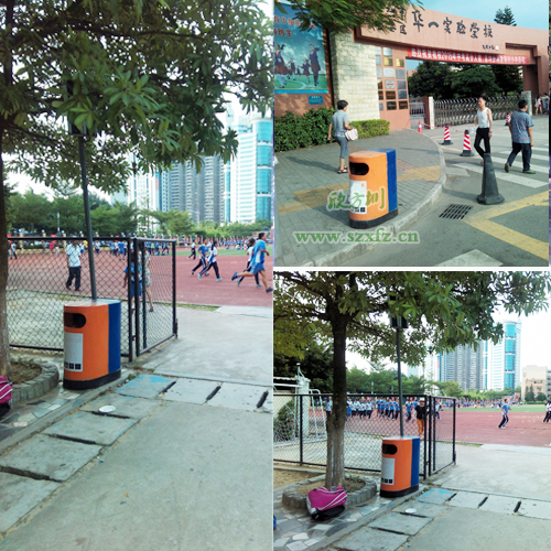深圳寶安沙井實驗學校,是欣方圳老顧客了。按照之前訂購的玻璃鋼垃圾桶樣板生產,發實物照給工廠的廠長確認。A21玻璃鋼環保分類垃圾桶的規格為:680*400*850mm.這款垃圾桶來頭可不小哦,它是獲得了專利外觀設計的玻璃鋼垃圾桶。每個產品是經過的嚴格生產程序制造出來,貼上產品合格證,符合企業高品質標準。玻璃鋼垃圾桶一邊嫩綠,一邊中絡黃,底座黑色,外加一個煙灰缸巧妙的搭配,簡潔、美觀。桶蓋/桶身采用FRP玻璃鋼復合材料制造,具有防腐、防盜、防生銹、易清潔等特點,表面涂層采用高分子耐老化膠衣涂層,色澤明快、持久。