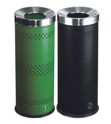 鋼制垃圾桶 采用優質冷軋鋼材料經剪鈑下料、折彎、沖壓、焊接、打磨、等工藝:表面經除油、防銹、酸洗磷化加工而成
