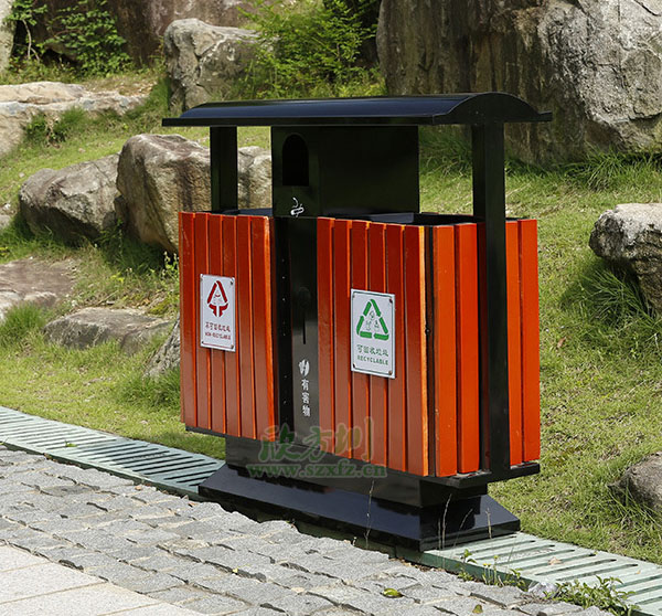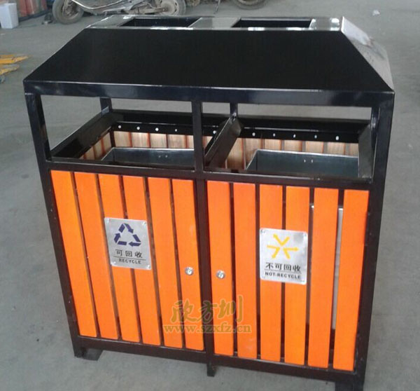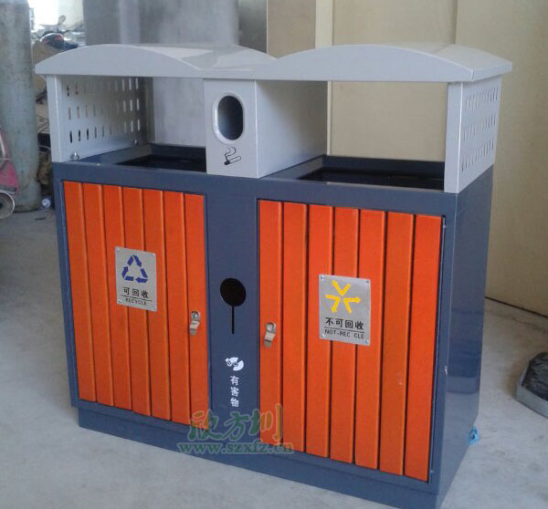 深圳新標準城中村街道社區不銹鋼五分類垃圾桶由有害垃圾、玻璃、金塑紙(為金屬、塑料、紙張的簡稱)、廚余垃圾、其他垃圾這5分類不銹鋼垃圾桶組合而成。其中金塑紙、其他垃圾日常產生量較大,所以分類收集容器也