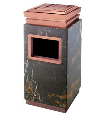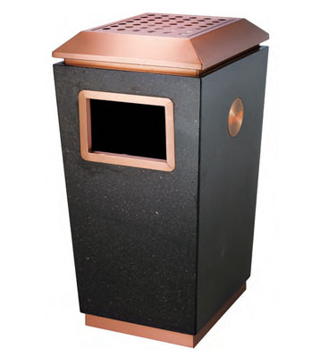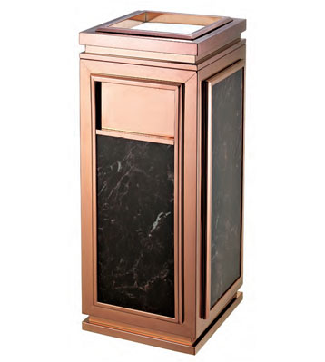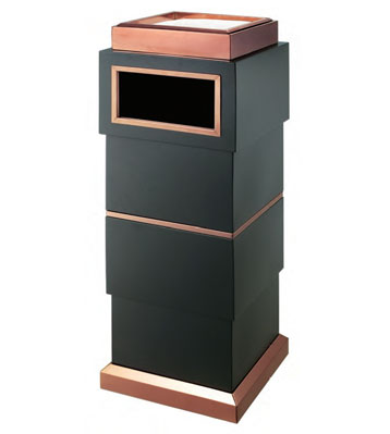 欣方圳為深圳嶺南天潤物業公司提供了一批室內垃圾桶,材質有鈦金類和鐵板噴塑類,外觀精美,使用價值高。 D272皇家座地煙灰桶規格:300*300*685,D295垃圾桶的規格為310*310*740,采用不銹鋼經鍍鈦處理,專業除