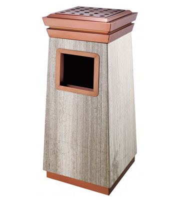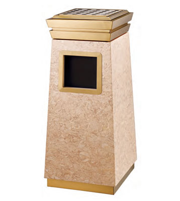 欣方圳為深圳嶺南天潤物業公司提供了一批室內垃圾桶,材質有鈦金類和鐵板噴塑類,外觀精美,使用價值高。 D272皇家座地煙灰桶規格:300*300*685,D295垃圾桶的規格為310*310*740,采用不銹鋼經鍍鈦處理,專業除