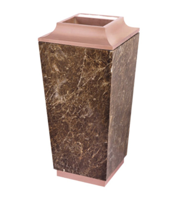 欣方圳為深圳嶺南天潤物業公司提供了一批室內垃圾桶,材質有鈦金類和鐵板噴塑類,外觀精美,使用價值高。 D272皇家座地煙灰桶規格:300*300*685,D295垃圾桶的規格為310*310*740,采用不銹鋼經鍍鈦處理,專業除