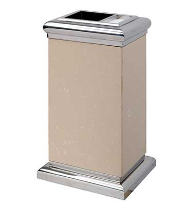 欣方圳為深圳嶺南天潤物業公司提供了一批室內垃圾桶,材質有鈦金類和鐵板噴塑類,外觀精美,使用價值高。 D272皇家座地煙灰桶規格:300*300*685,D295垃圾桶的規格為310*310*740,采用不銹鋼經鍍鈦處理,專業除