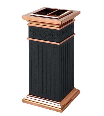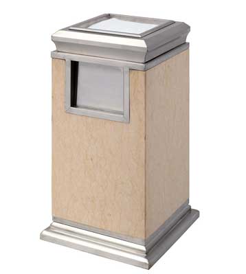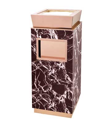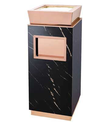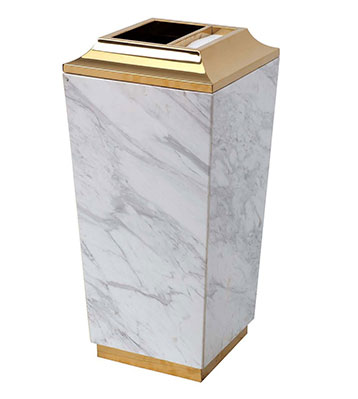 欣方圳為深圳嶺南天潤物業公司提供了一批室內垃圾桶,材質有鈦金類和鐵板噴塑類,外觀精美,使用價值高。 D272皇家座地煙灰桶規格:300*300*685,D295垃圾桶的規格為310*310*740,采用不銹鋼經鍍鈦處理,專業除