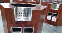 鋼木垃圾桶 鋼木選用防腐木、進口山樟木或塑木,經除蟲、防腐,烘干處理后加工成型。桶身框架冷軋鋼經酸洗磷化制作
