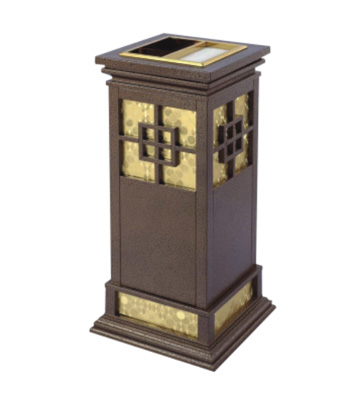 • 產品材質:采用天然的大理石與優質冷軋鋼板或不銹鋼鋼板制作而成,四面大理石用鋼板螺絲固定于桶體,有內桶,方便提倒垃圾,桶頭煙灰盅可放白石子可清洗,鋼板經折彎沖壓一次性成型。產品一律用室外粉靜電噴塑,經過180°的高溫,延長垃圾桶使用壽命,顏色持久不變亮麗如新。