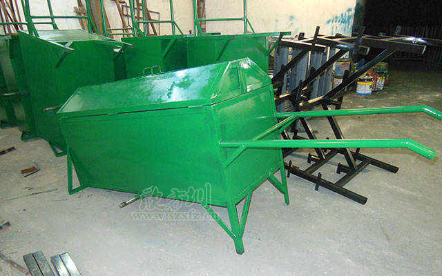 欣方圳專業生產手推垃圾車,車間有數控折彎機、數控沖床、滾圓機、數控車床 、激光切割機、送樣機、鏜床、二保焊機等行業先進設備。