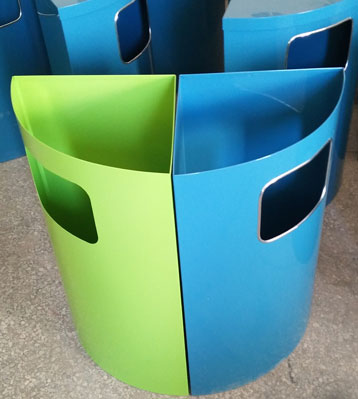 欣方圳鋼制室內單桶垃圾桶均采用符合國家選材標準的優質冷軋鋼板和優質鍍鋅板制作而成。