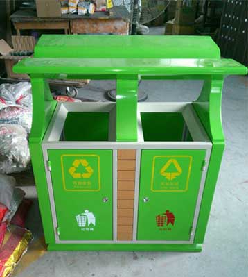 欣方圳鋼制戶外分類垃圾桶均選用優質的冷軋鋼板經噴砂處理去油去銹后,鋼板表面抗紫外線丙稀酸油漆多層噴涂,