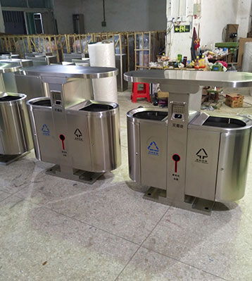 欣方圳小區(qū)不銹鋼分類垃圾桶工廠生產圖