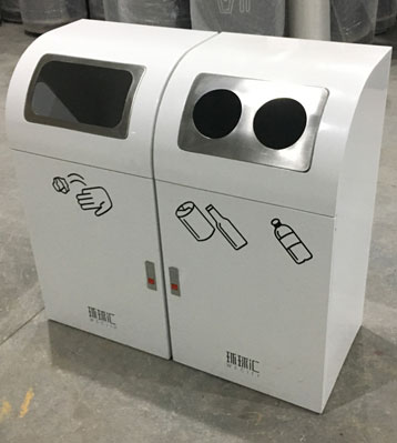 • 產品材質:欣方圳室內三分類垃圾箱果皮箱采用優質冷軋鋼材料經剪鈑下料、折彎、沖壓、焊接、打磨、等工藝:表面經過除油、噴砂防銹處理后,再進行酸洗磷化處理;表面清理干燥后整體進行靜電噴涂或烤漆處理,靜電噴涂是經過流水線高溫固化爐固化后再出爐冷卻,加工后的塑粉附著力強,不易剝落;