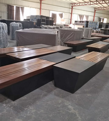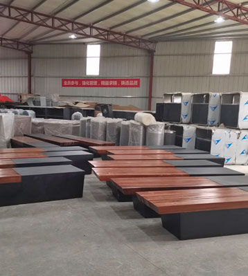 市政景觀提升工程不銹鋼戶外休閑排椅椅面原材料采用真空泵排除空氣、填充防腐液、加壓滲透、抽真空排出多余防腐液達到先進的防腐防蟲工藝。