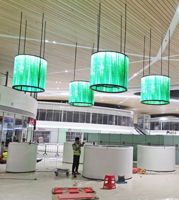 深圳機場衛星廳不銹鋼景觀花箱現場安裝圖