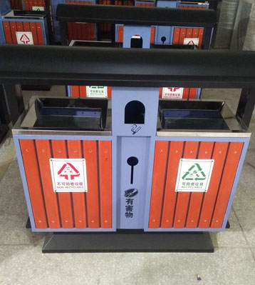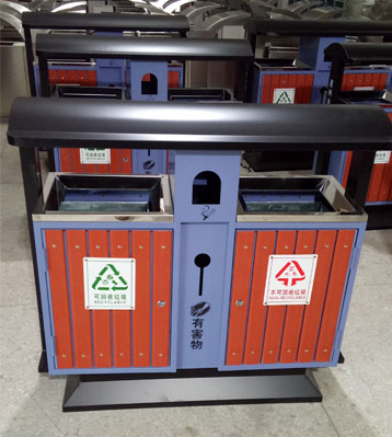 • 產品材質:戶外鋼木分類垃圾桶定制可選進口實木(防腐木.紅胡桃.山樟木等)、鋼結構、塑木等。