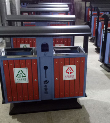 戶外鋼木分類垃圾桶便于惠州植物園垃圾投放