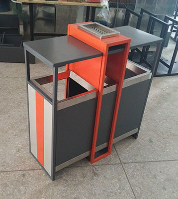 欣方圳戶外鋼制分類烤漆垃圾桶表面經過除油、噴砂防銹處理后,再進行酸洗磷化處理;表面清理干燥后整體進行靜電噴涂或烤漆處理.。